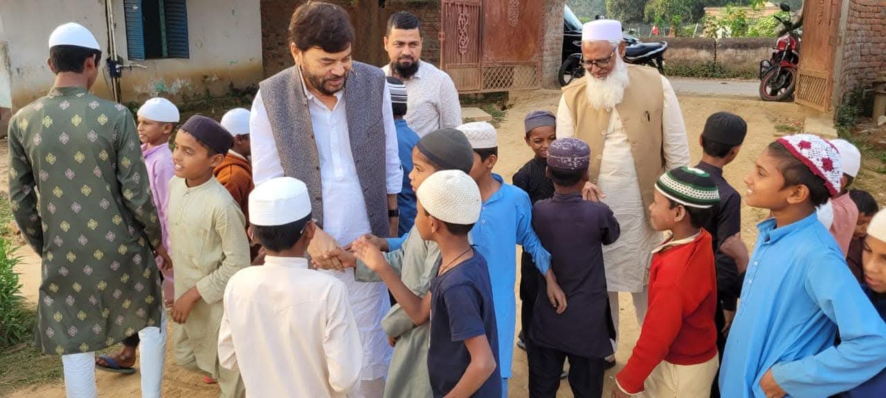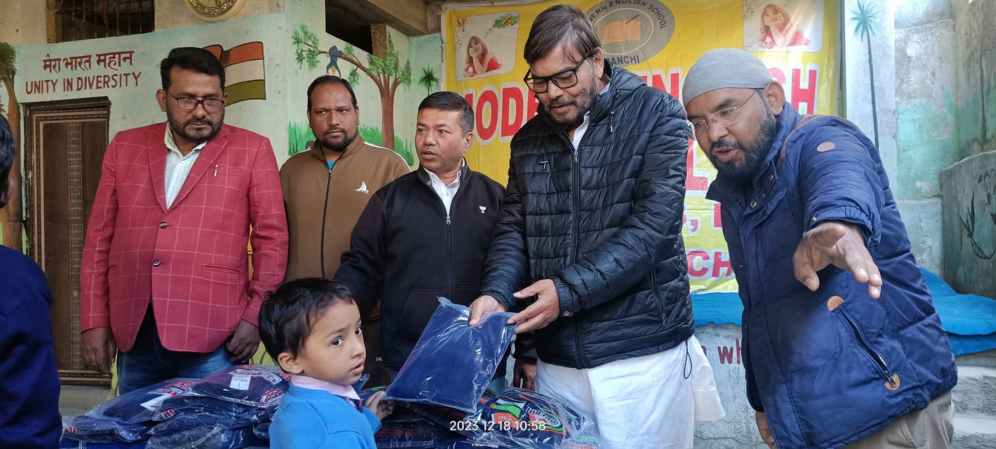 শিশুক স্কুলৰ ইউনিফৰ্ম বিতৰণ কৰা মুহূৰ্তত ইব্ৰাৰ আহমেদে