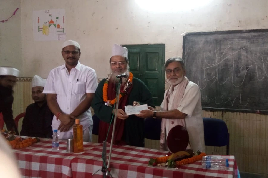 হাজী ডাঃ মহছিন আলী ছুহাইলে বঁটা গ্ৰহণ কৰাৰ এক দৃশ্য়