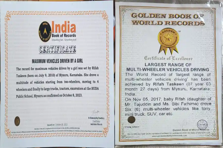 ৰিফাহ টাস্কিনে লাভ কৰা ইণ্ডিয়া বুক অৱ ৱৰ্ল্ড ৰেকৰ্ডছ আৰু গ'ল্ডেন বুক অৱ ৱৰ্ল্ড ৰেকৰ্ডছ