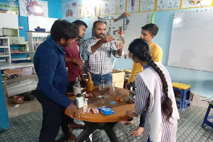 এটা পৰীক্ষাগাৰত ছাত্ৰ-ছাত্ৰীৰ সৈতে ছাজিদ হুছেইন
