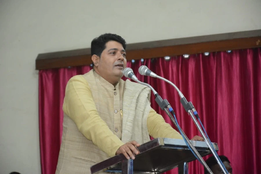 এজাজ ধেবাৰে বক্তৃতা প্ৰদান কৰি থকা এক দৃশ্য