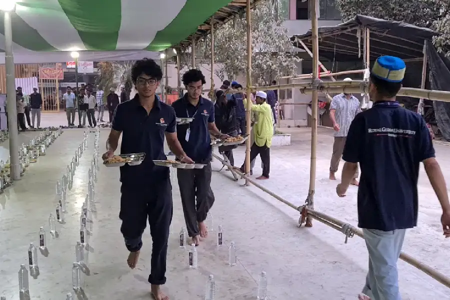 ৰয়েল গ্ল'বেল ইউনিভাৰ্ছিটীৰ ২০ জনীয়া ছাত্ৰৰ দলটোক লৈ তত্ত্বাৱধায়ক ৰাজেশ কুমাৰ আগৰৱালে বুঢ়া জামে মছজিদত ইফটাৰ বিতৰণ কৰে। ইয়াৰ পূৰ্বে তেওঁলোকে বিভিন্ন মছজিদ আৰু সামাজিক অনুষ্ঠানত ইফটাৰ বিতৰণ কৰিছে। ৰয়েল গ্ল'বেল ইউনিভাৰ্ছিটীয়ে সম্পূৰ্ণ নিজাববীয়াকৈ 'ৰয়েল অন্ন সেৱা'ৰ জৰিয়তে বিগত ৬ বছৰ ধৰি খাদ্য বিতৰণ কৰি আহিছে।