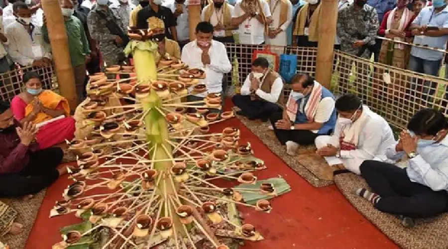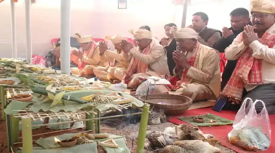 মে-দাম-মেফিৰ এক অনুষ্ঠানত বৰ্তমানৰ মুখ্যমন্ত্ৰী হিমন্ত বিশ্ব শৰ্মাই অংশ গ্ৰহণ কৰা এক দৃশ্য