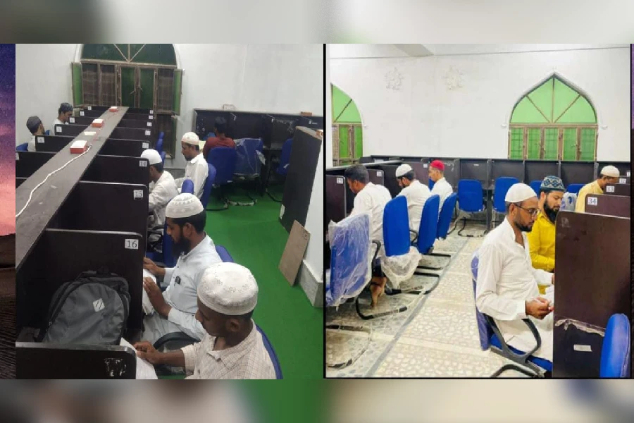মছজিদৰ চৌহদত গঢ়ি উঠা পুথিভঁৰালত শিক্ষাৰ্থীয়ে অধ্যয়ন কৰাৰ এক দৃশ্য