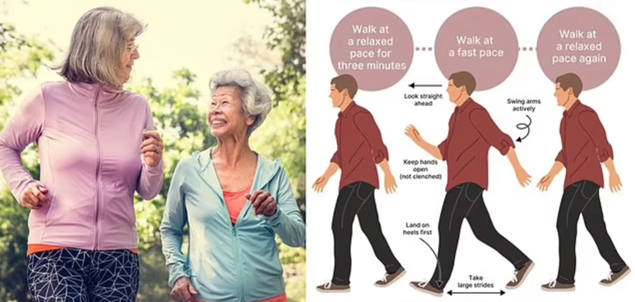 ৩ মিনিটৰ উচ্চ তীব্ৰতাৰ পদযাত্ৰা (যি গতিত কথা কোৱাটো সম্ভৱ কিন্তু প্ৰত্যাহ্বানজনক) আৰু ৩ মিনিটৰ নিম্ন তীব্ৰতাৰ পদযাত্ৰা (য'ত কথোপকথন আৰামদায়ক হৈ থাকে)। এই ছয় মিনিটৰ চক্রটো সপ্তাহত চাৰিবাৰ অন্ততঃ ৩০ মিনিটৰ বাবে পুনৰাবৃত্তি কৰা হয়।