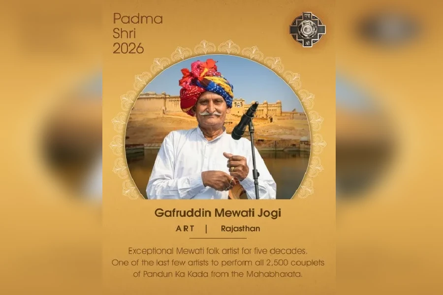 ৰাজস্থানৰ ডেগ জিলাৰ আন্তঃৰাষ্ট্ৰীয় খ্যাতিসম্পন্ন লোকশিল্পী তথা ভাপাং বাদক গফৰুদ্দিনক পদ্মশ্ৰী বঁটাৰে সন্মানিত কৰা হয়। গফৰুদ্দিন মেৱটী যোগী ৰাজস্থানৰ ভৰতপুৰৰ এজন বিখ্যাত লোকশিল্পী। তেওঁ এগৰাকী নিপুণ ভাপাং বাদ্যযন্ত্ৰী আৰু মহাভাৰতৰ এক লোক সংস্কৰণ 'পাণ্ডুন কা কাড়া'ৰ অনন্য গল্পকাৰ। তেওঁ এই কলা ৬০ বছৰৰো অধিককাল ধৰি সংৰক্ষণ কৰি ৰাখিছে আৰু ২৫০০ ৰো অধিক গীত মুখস্থ কৰি ৰাখিছে। তেওঁ পাণ্ডুন কা কাড়াৰ একমাত্ৰ জীৱন্ত গায়ক আৰু তেওঁ ভাৰতীয় লোক ঐতিহ্যক বিশ্বব্যাপী স্বীকৃতি প্ৰদান কৰিছে।