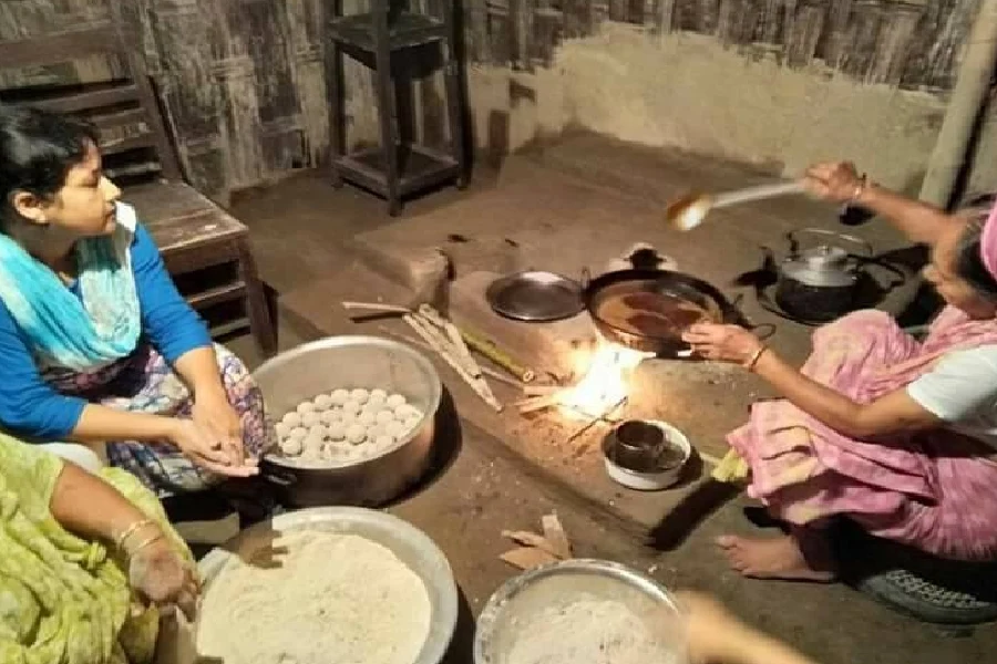 বিহুৰ পিঠা-পনা বনোৱাত ব্যস্ত গাঁৱৰ মহিলা