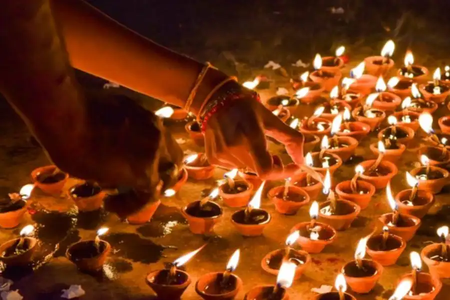 পোহৰৰ উৎসৱ দীপাৱলীত চাকি জ্বলোৱা এক দৃশ্য