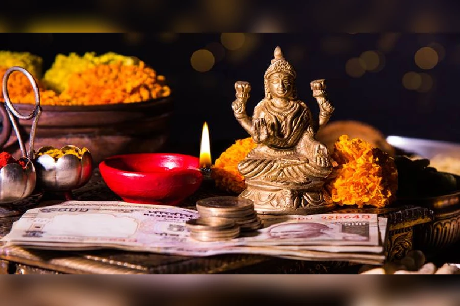 দেৱী লক্ষ্মীক পূজা কৰাৰ এক দৃশ্য