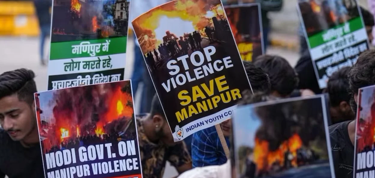 মণিপুৰৰ হিংসাৰ প্ৰতিবাদৰ ছবি
