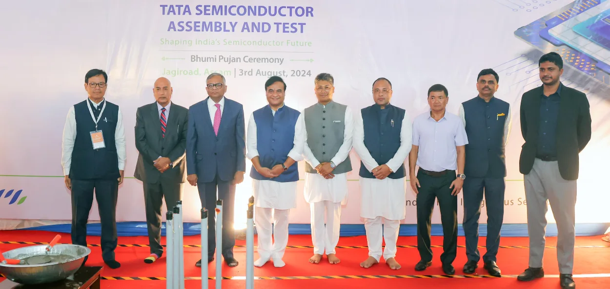 অসমৰ জাগীৰোডত টাটা ছেমিকণ্ডাক্টৰ প্ৰকল্পৰ ভূমি পূজন অনুষ্ঠানত অসমৰ মুখ্যমন্ত্ৰী আৰু অন্যান্য বিশিষ্ট ব্যক্তিসকল