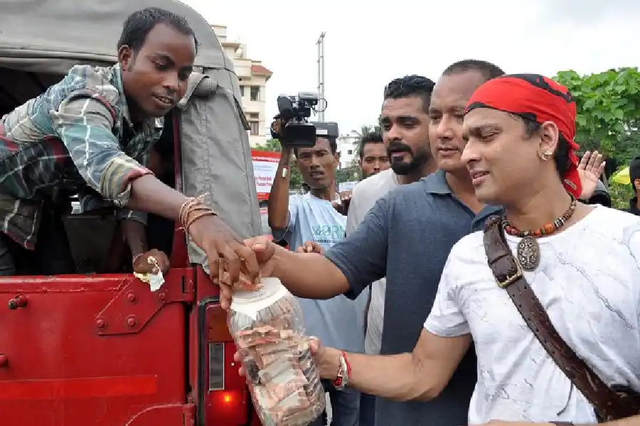 শিল্পী জুবিন গাৰ্গ বানাক্ৰান্তলোকৰ বাবে পুজি সংগ্ৰহ কৰাৰ এক দৃশ্য