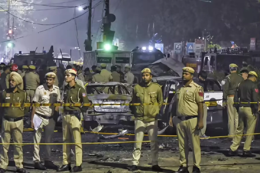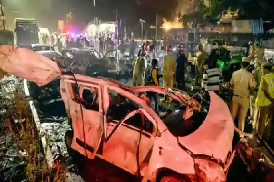 দিল্লীৰ লালকিল্লাৰ সমীপত হোৱা বিস্ফোৰণৰ পিছৰ এক দৃশ্য