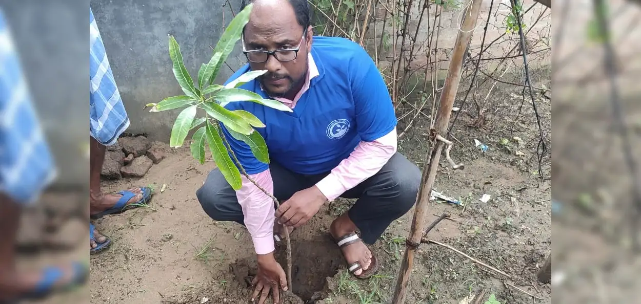 গছপুলি ৰোপনৰ সময়ত বাহাৰুল ইছলাম