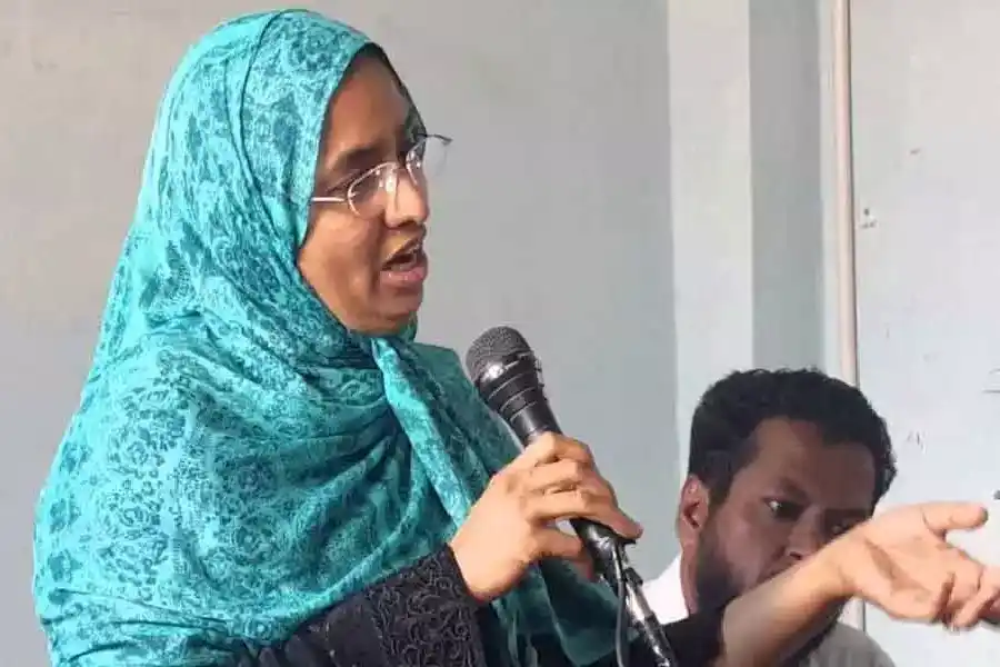 ৰাজহুৱা অনুষ্ঠানত ভাষণ দি থকা অৱস্থাত ডাঃ ছামিনা বেগম