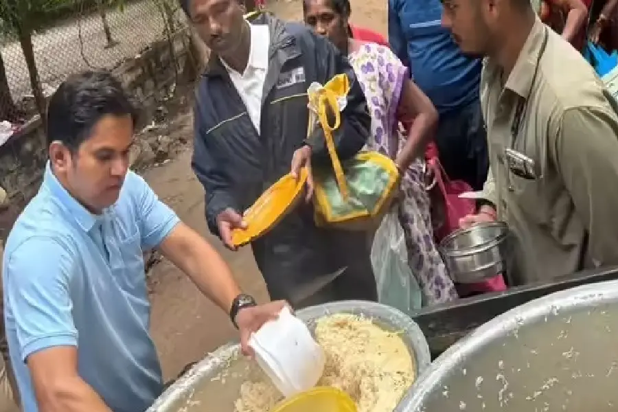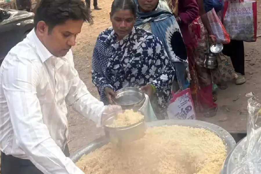 হায়দৰাবাদত বিনামূলীয়া খাদ্য বিতৰণ কৰি থকা অৱস্থাত মহম্মদ আজিজ