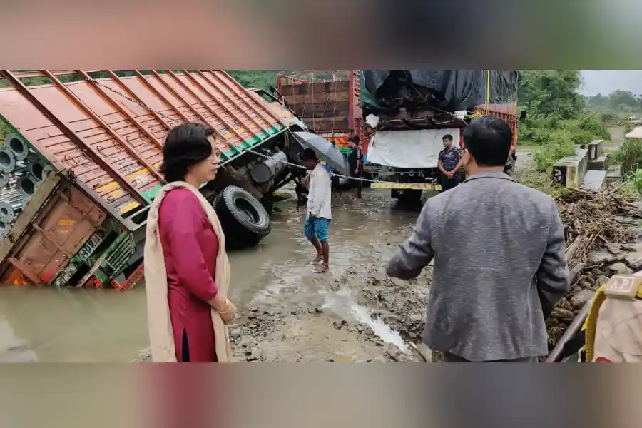 ডিমা হাছাও জিলাৰ দুৰ্যোগগ্ৰস্ত স্থানসমূহত পৰিদৰ্শন আৰু তদাৰক কৰাৰ মুহূৰ্তত উপায়ুক্ত নজৰীন আহমেদ
