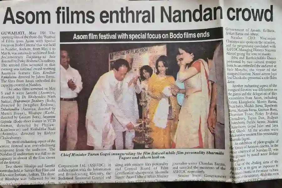 অসম চৰকাৰৰ আমোলা হিচাপে নাজৰীন আহমেদে আয়োজন কৰা চলচ্চিত্ৰ মহোৎসৱ উদ্বোধন কৰাৰ মুহূৰ্তত অসমৰ প্ৰাক্তন মুখ্যমন্ত্ৰী তৰুণ গগৈ