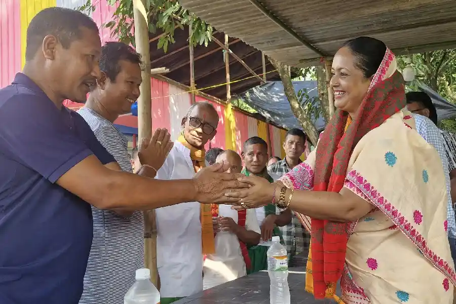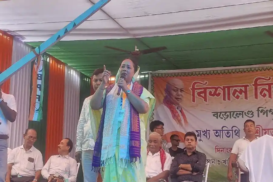 বিপিএফৰ বিশাল নিৰ্বাচনী সভা ভাষণ প্ৰদান কৰি থকা অৱস্থাত বেগম আখতাৰা আহমেদ