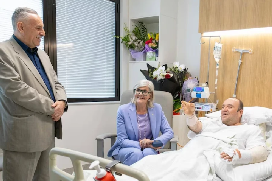 চিকিৎসালয়ত আহত আহমেদ আল-আহমেদক সাক্ষাৎ অষ্ট্ৰেলিয়াৰ গৱৰ্নৰ জেনেৰেল ছেম মোষ্টিনৰ