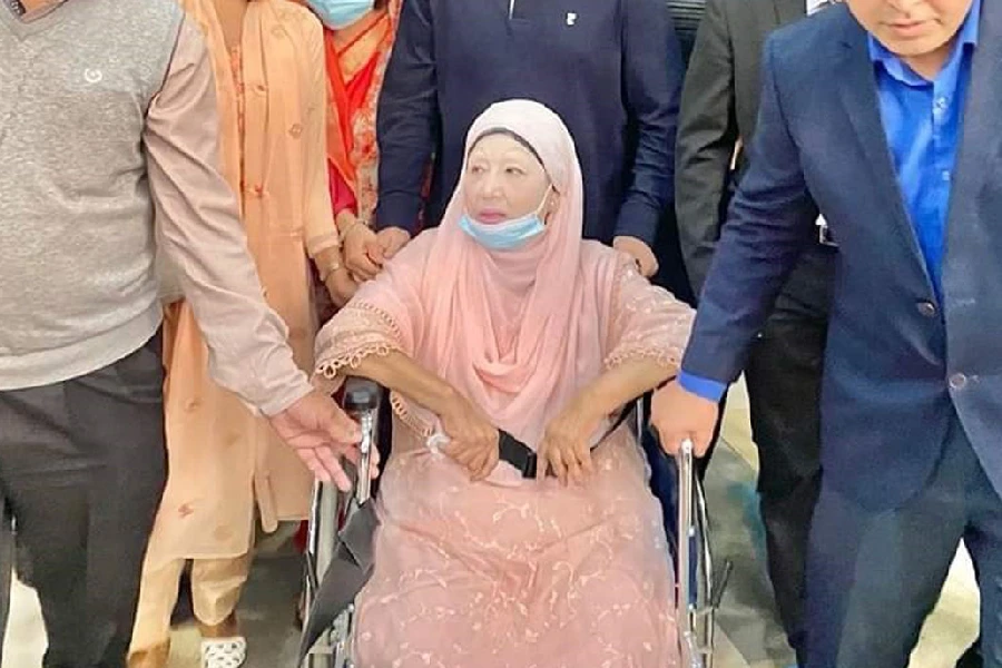 স্বাস্থ্যজনিত কাৰণত মুক্তিৰ পাছত তেওঁ গৃহবন্দী হৈ আছিল। ২০২৪ চনত ব্যাপক জনাক্ৰোশৰ মাজতে শ্বেইখ হাছিনাৰ চৰকাৰ ক্ষমতাৰ পৰা বাহিৰ হয়; অন্তৱৰ্তীকালীন চৰকাৰে খালিদা জিয়াৰ মুক্তি আৰু বেংক একাউণ্ট বন্ধ কৰাৰ নিৰ্দেশ দিয়ে। তেতিয়ালৈকে তেওঁৰ অৱস্থা অতি সংকটজনক হৈ পৰিছিল। ২০২৫ চনৰ জানুৱাৰীত চিকিৎসাৰ বাবে লণ্ডনলৈ গৈছিল।